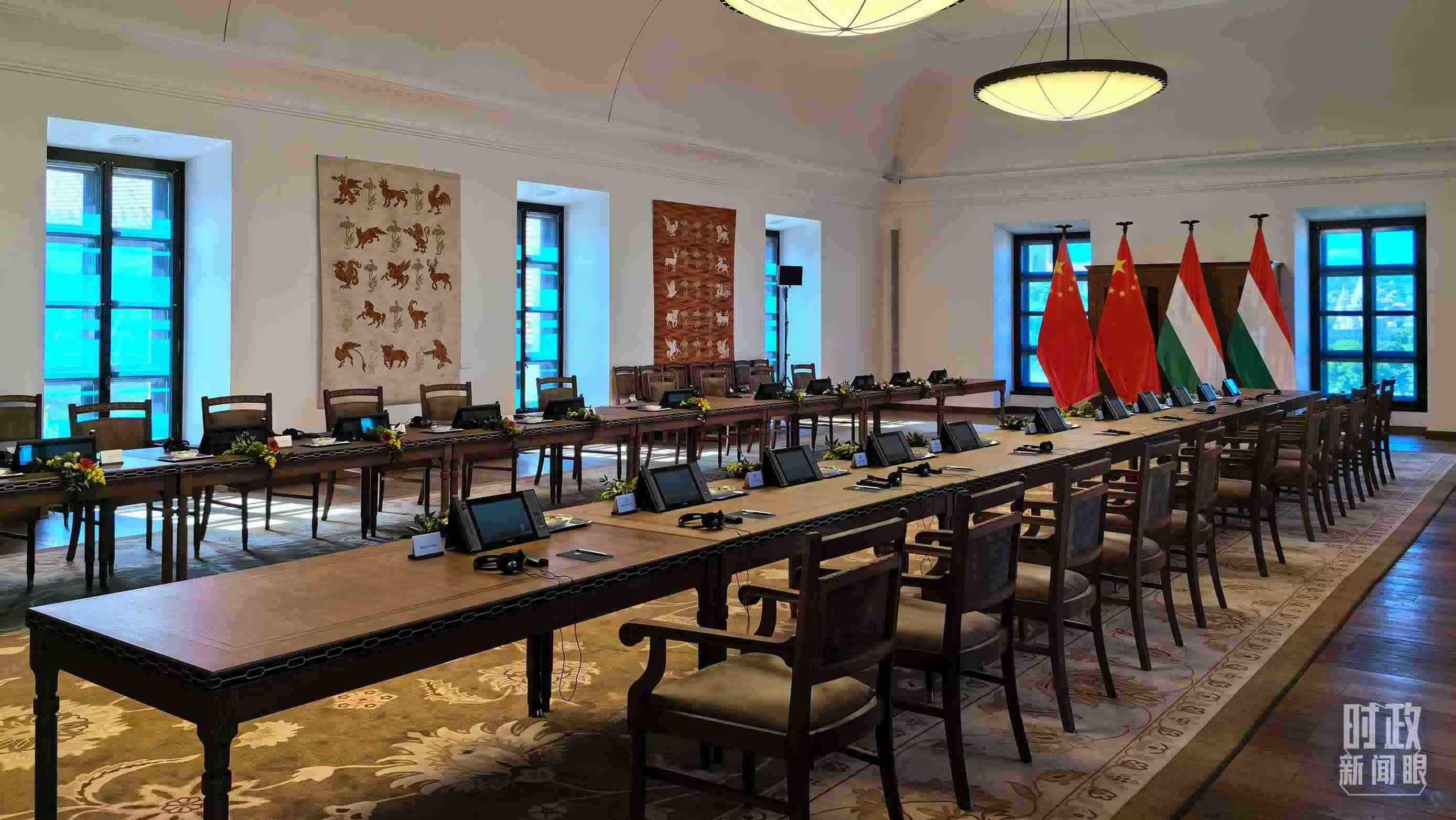 △5月9日,習主席同匈牙利總理歐爾班在這里舉行會談。這是會談開始前的現場。(總臺央視記者陸泓宇拍攝)
