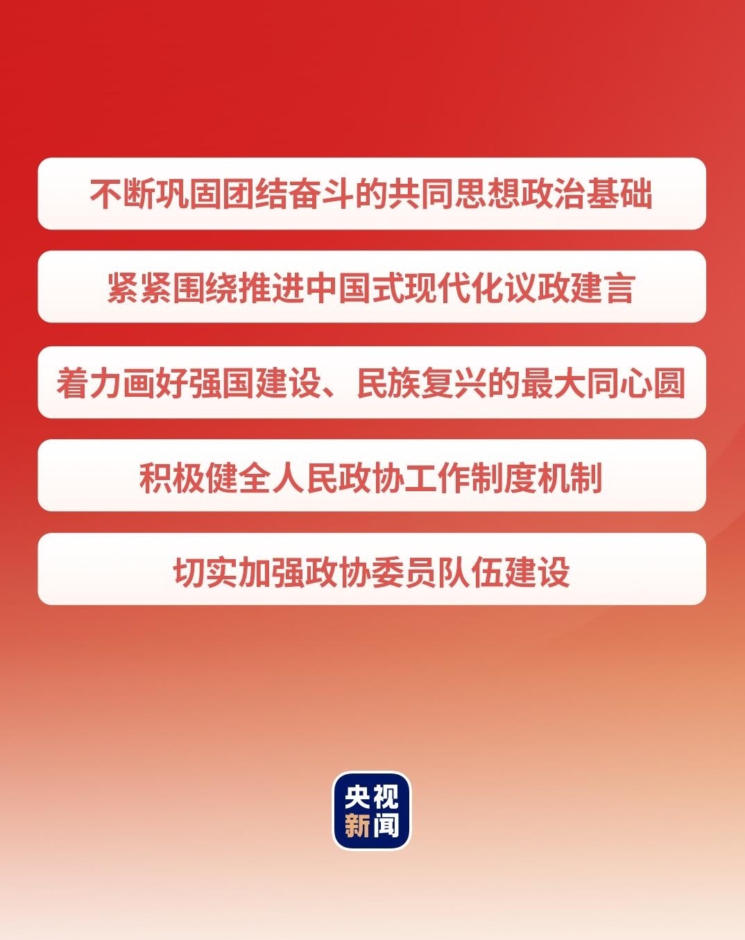 在充滿光榮和夢(mèng)想的新征程上,人民政協(xié)緊密團(tuán)結(jié)在以習(xí)近平同志為核心的中共中央周圍,高舉中國(guó)特色社會(huì)主義偉大旗幟,同心同德、自信自強(qiáng),團(tuán)結(jié)奮進(jìn)、開拓創(chuàng)新,必將譜寫新的時(shí)代華章、創(chuàng)造新的歷史偉業(yè)。