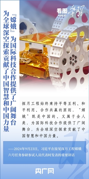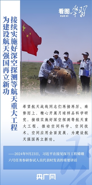 中國(guó)探月工程成果凝結(jié)著我國(guó)幾代航天人的智慧和心血。9月23日,習(xí)近平總書記接見(jiàn)探月工程嫦娥六號(hào)任務(wù)參研參試人員代表并發(fā)表重要講話??倳浉叨瓤隙ㄦ隙鹆?hào)任務(wù)成功的重要意義,以及探月工程為我國(guó)航天事業(yè)發(fā)展、為人類探索宇宙空間作出的重大貢獻(xiàn),勉勵(lì)航天戰(zhàn)線工作者再接再厲、乘勢(shì)而上,為建設(shè)航天強(qiáng)國(guó)再立新功。一起來(lái)學(xué)習(xí)!