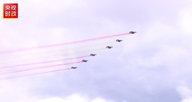習(xí)近平主席車隊(duì)抵達(dá)哈薩克斯坦總統(tǒng)府時(shí),六架哈薩克斯坦空軍戰(zhàn)機(jī)從總統(tǒng)府上空飛過(guò),拉出象征中國(guó)國(guó)旗的紅黃色彩帶,以最高禮儀歡迎習(xí)近平主席。