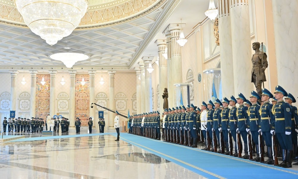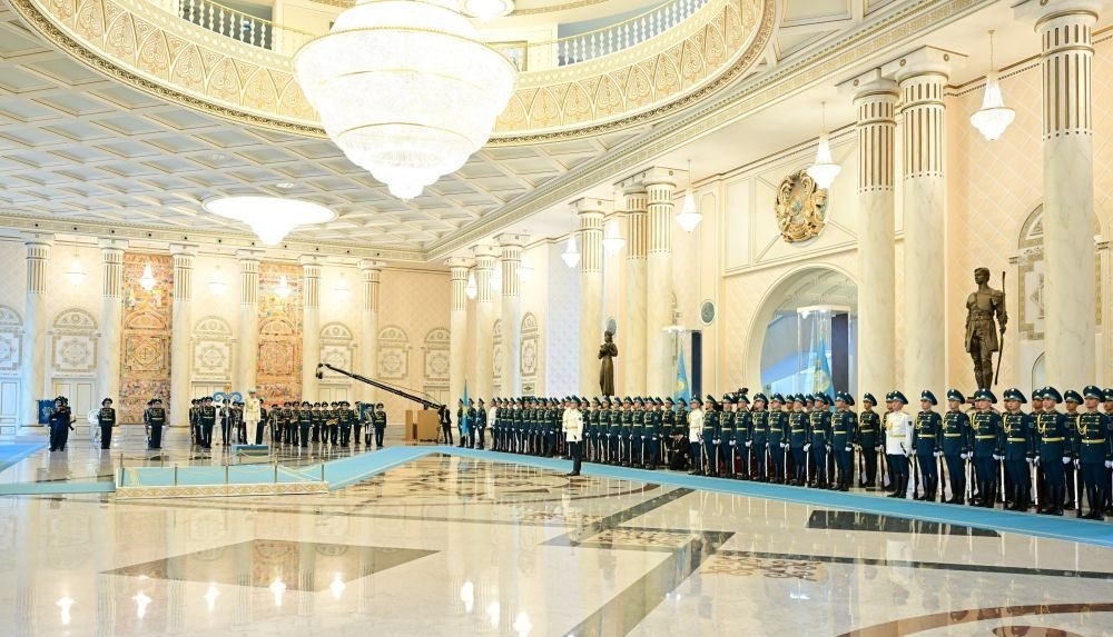 當地時間3日,國家主席習近平在阿斯塔納出席哈薩克斯坦總統(tǒng)托卡耶夫舉行的歡迎儀式。