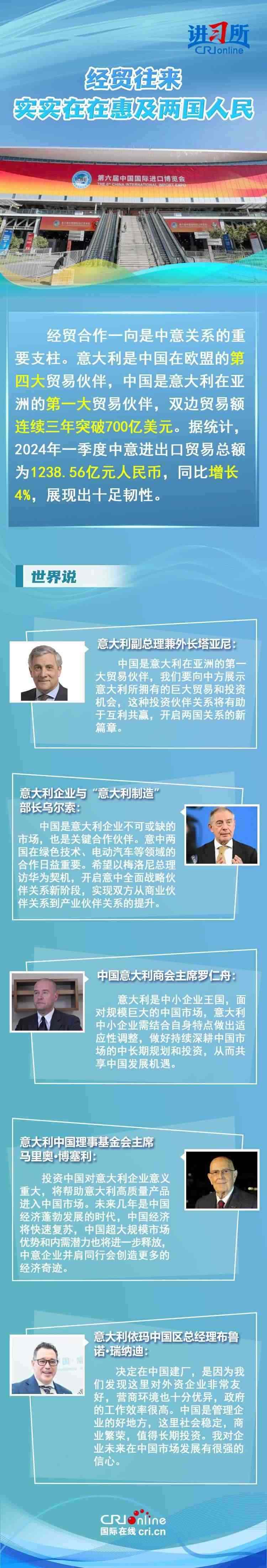 梅洛尼表示,中國對意大利而言是一個極為重要的經(jīng)貿(mào)和文化合作伙伴。意大利各界人士認為,中意并肩同行會創(chuàng)造更多的經(jīng)濟奇跡,同時兩國非常有必要開展文明對話,期待未來兩國展開更多領(lǐng)域合作,開啟全面戰(zhàn)略伙伴關(guān)系新階段。