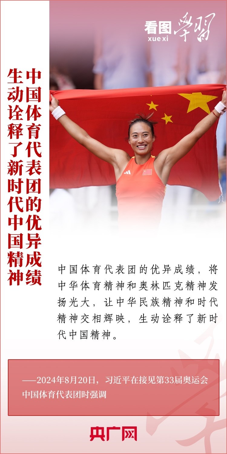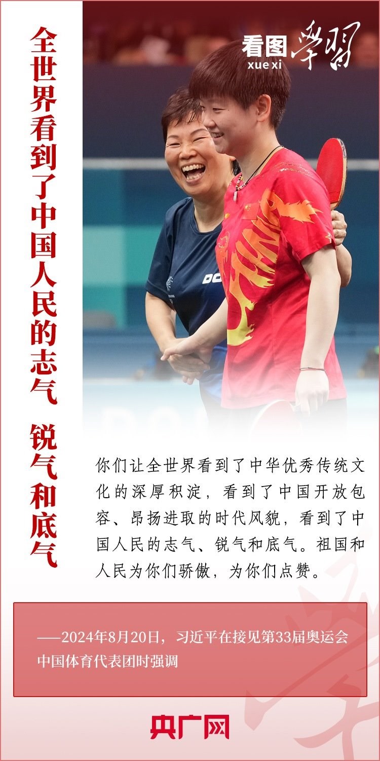 “祖國和人民為你們驕傲,為你們點(diǎn)贊?!?月20日,習(xí)近平總書記在人民大會堂接見第33屆奧運(yùn)會中國體育代表團(tuán)并發(fā)表重要講話。總書記高度肯定中國體育代表團(tuán)取得的優(yōu)異成績,贊揚(yáng)他們充分彰顯了新時代中國力量、生動詮釋了新時代中國精神、充分展現(xiàn)了新時代中國形象,勉勵大家戒驕戒躁、再接再厲,為建設(shè)體育強(qiáng)國再立新功。一起來學(xué)習(xí)!