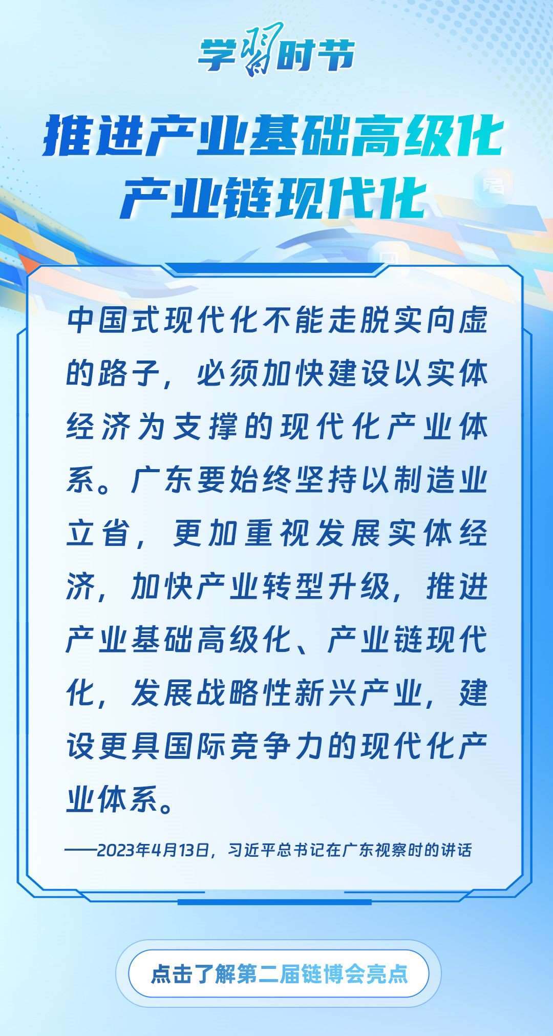 習(xí)近平主席心系產(chǎn)業(yè)鏈供應(yīng)鏈安全穩(wěn)定,多次強(qiáng)調(diào)中國(guó)將以實(shí)際行動(dòng)維護(hù)全球產(chǎn)業(yè)鏈供應(yīng)鏈安全穩(wěn)定,為世界各國(guó)共同構(gòu)筑安全穩(wěn)定、暢通高效、開放包容、互利共贏的全球產(chǎn)業(yè)鏈供應(yīng)鏈體系提供中國(guó)方案。習(xí)近平主席曾在多個(gè)重要場(chǎng)合對(duì)此作出一系列深刻闡述,讓我們一起學(xué)習(xí)。
