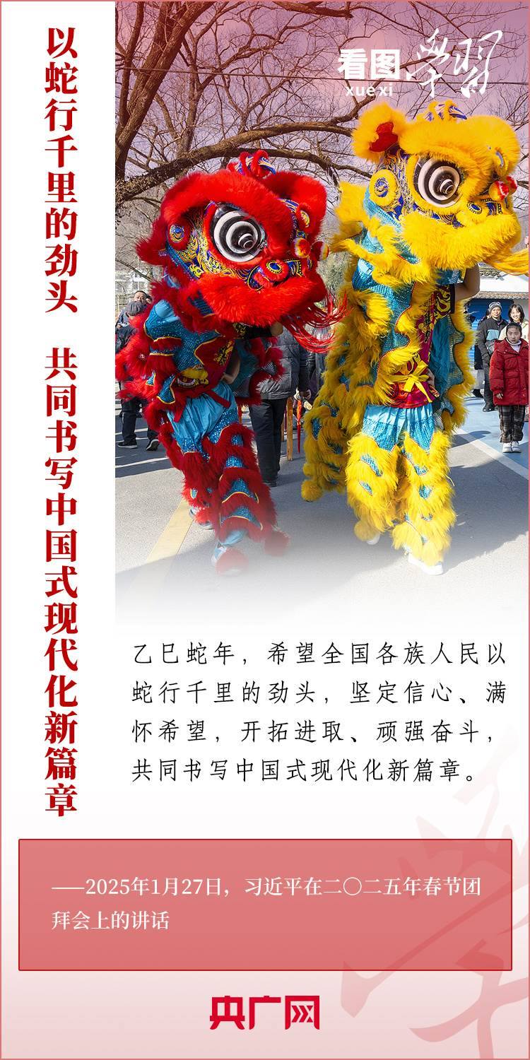 1月27日,中共中央、國務(wù)院在北京舉行春節(jié)團拜會,習(xí)近平總書記發(fā)表熱情洋溢的講話,向全國各族人民、港澳臺同胞、海外僑胞拜年并致以新春祝福??倳浽谥v話中深情回顧過去一年中國式現(xiàn)代化取得很不平凡的發(fā)展歷程,“希望全國各族人民以蛇行千里的勁頭,堅定信心、滿懷希望,開拓進取、頑強奮斗,共同書寫中國式現(xiàn)代化新篇章。”一起來學(xué)習(xí)!