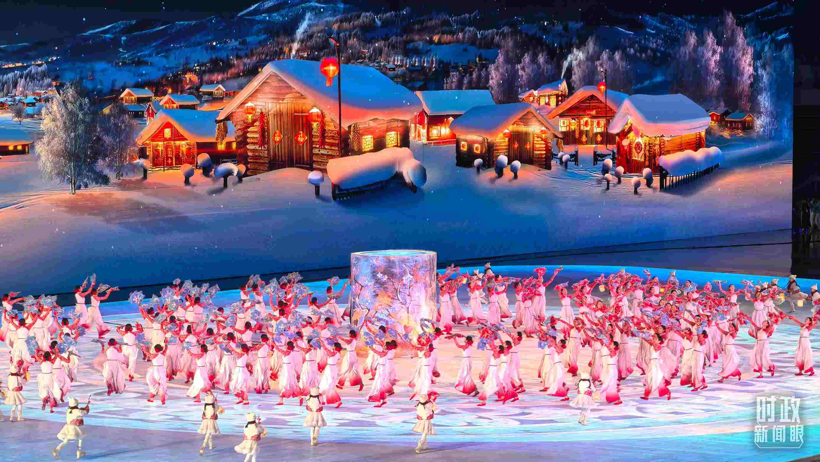 開幕式以“哈爾濱、中國、亞洲”的地域遞進層次展開。一盞冰燈映照新春,講述從啟夢、追夢到圓夢的冰雪夢想。從“冰晶藍”到“中國紅”,旋轉(zhuǎn)的“冰凌花”盡顯喜迎八方賓朋的熱情。