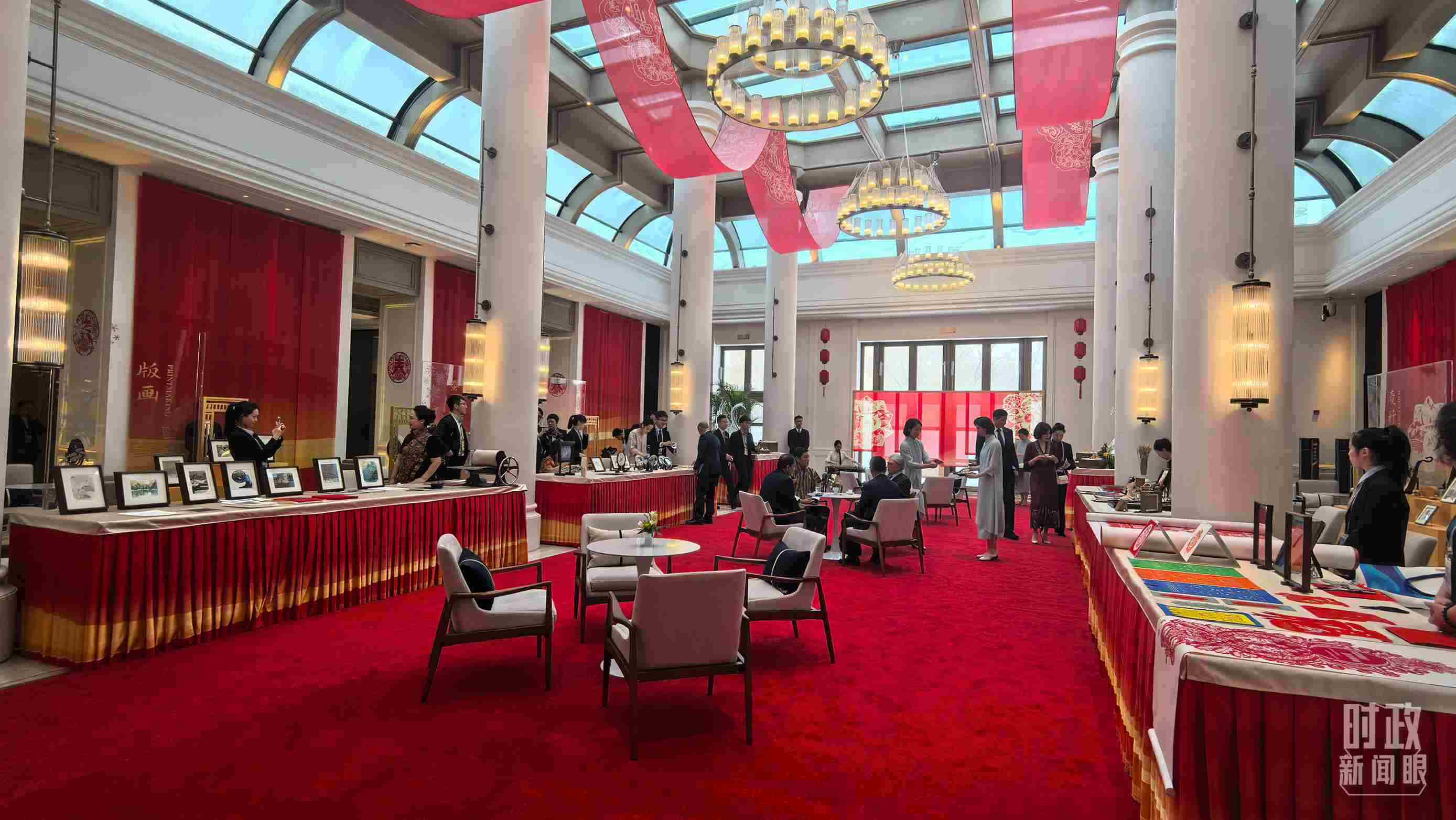 △歡迎宴會開始前的黑龍江非物質(zhì)文化遺產(chǎn)展示。(總臺央視記者史偉、央廣記者馬喆拍攝)