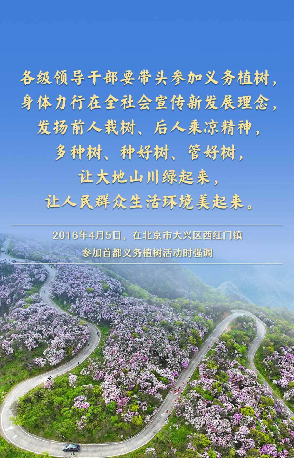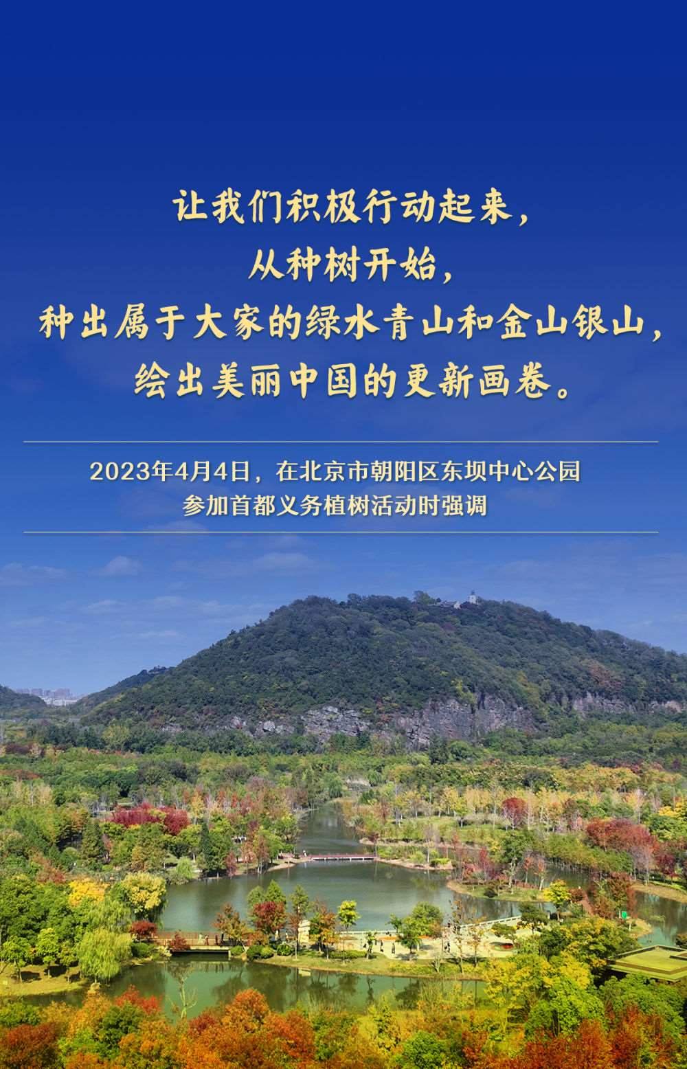 黨的十八大以來(lái),習(xí)近平總書記高度重視國(guó)土綠化,每年都同干部群眾一起參加首都義務(wù)植樹,并作出一系列重要論述,為推進(jìn)美麗中國(guó)建設(shè)、實(shí)現(xiàn)人與自然和諧共生的現(xiàn)代化指明方向。