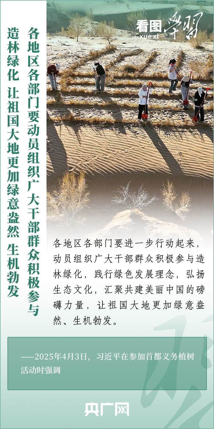 植樹造林是生態(tài)文明建設重要一環(huán)。4月3日,習近平總書記參加首都義務植樹活動。在植樹現(xiàn)場,總書記高度肯定國土綠化工作取得來之不易的成績,強調(diào)綠化祖國必須堅持“三綠”并舉、“四庫”聯(lián)動,要更加注重“提質(zhì)”“興業(yè)”“利民”,“匯聚共建美麗中國的磅礴力量,讓祖國大地更加綠意盎然、生機勃發(fā)”。一起來學習!