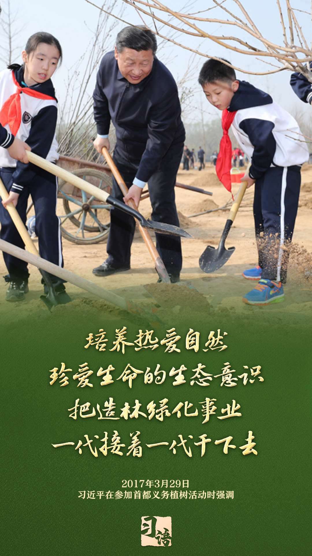 “植樹造林是一件很有意義的事情,是一項功在當(dāng)代、利在千秋的崇高事業(yè),要一以貫之、持續(xù)做下去。”自2013年以來的13個春天里,無論晴雨,習(xí)近平總書記都會拿起鐵鍬,與干部群眾一起參加首都義務(wù)植樹活動。鏟土造坑、培土圍堰、提水澆灌,總書記身體力行種下綠色的希望,對擴綠興綠護綠、建設(shè)美麗中國提出明確要求。一起學(xué)習(xí)。