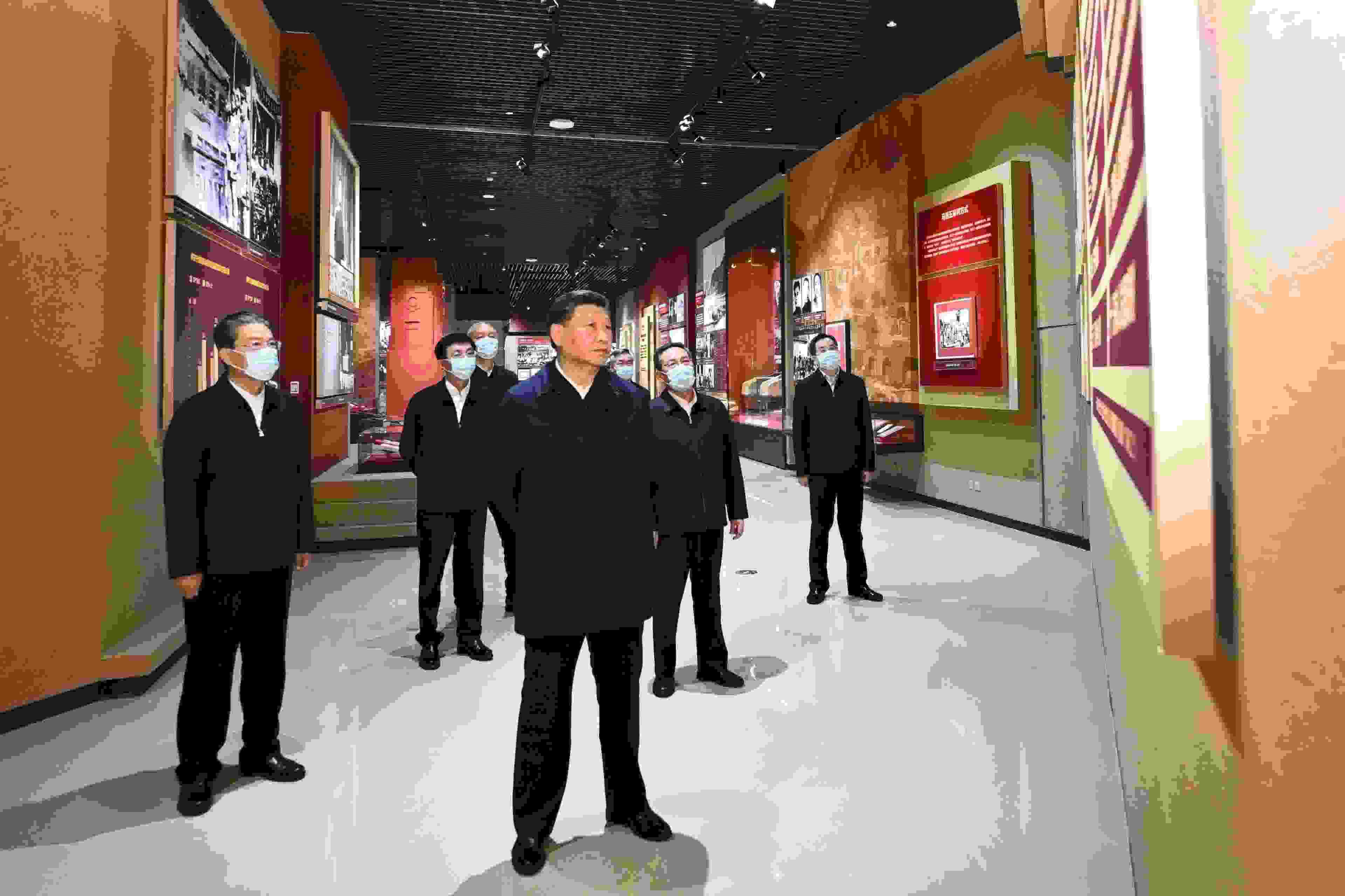 2022年10月27日,習(xí)近平總書(shū)記在延安革命紀(jì)念館,參觀《偉大歷程——中共中央在延安十三年歷史陳列》。新華社記者 燕雁 攝