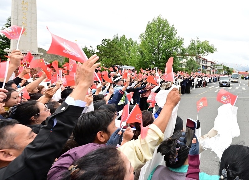 8月20日中午,中共中央總書記、國家主席、中央軍委主席習(xí)近平率中央代表團乘專機抵達(dá)拉薩,出席西藏自治區(qū)成立60周年慶?;顒?。習(xí)近平等從機場乘車到住地途中,各族群眾在街道兩旁熱情歡迎。