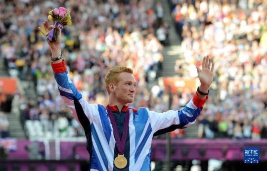 2012年8月5日,英國選手盧瑟福德在2012年倫敦奧運會田徑男子跳遠(yuǎn)決賽頒獎儀式上。新華社記者 楊磊 攝