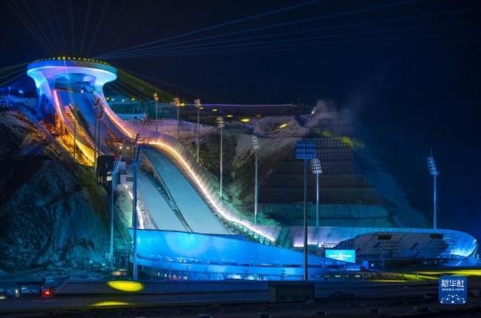 這是位于河北省張家口市崇禮區(qū)的國家跳臺滑雪中心“雪如意”點亮效果(無人機照片,2020年12月19日攝)。新華社發(fā)