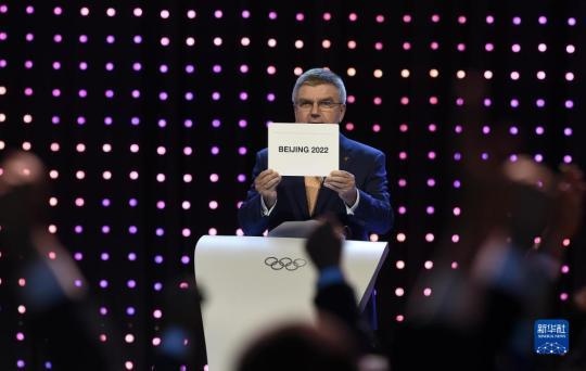 2015年7月31日,國際奧委會主席巴赫在國際奧委會第128次全會上宣布北京攜手張家口獲得2022年冬奧會舉辦權(quán)。新華社記者 公磊 攝