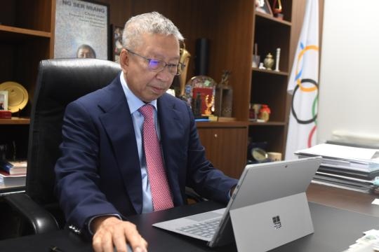 1月25日,國際奧委會副主席黃思綿在新加坡接受采訪。新華社發(fā)(鄧智煒攝)