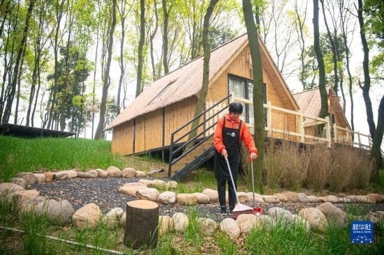 3月29日,諸暨市楓橋鎮(zhèn)陽春村村民在陽春山月游樂度假村內(nèi)工作。當(dāng)?shù)赝ㄟ^閑置荒山土地流轉(zhuǎn)發(fā)展鄉(xiāng)村旅游,幫助陽春村60名村民實(shí)現(xiàn)在家門口就業(yè)增收。