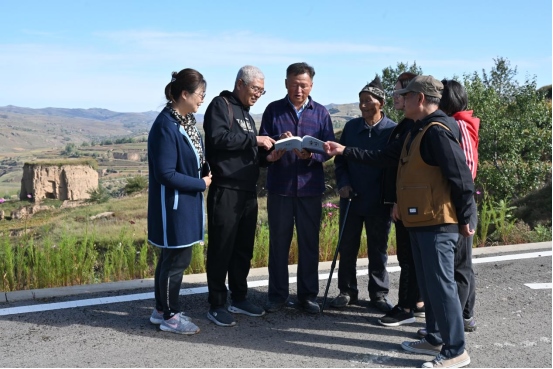 為了助推清水河縣全力推進長城國家文化公園項目建設(shè),呼和浩特市長城科普學會會員們到達馬頭山下的小元峁段明長城、川峁村鴻門口馬市遺址、水泉鎮(zhèn)紅(鴻)門口地下長城博物館后,顧不得旅途勞頓和登山困乏,立即開展考察工作、拍照、察看、比對、討論,將學會出版的《長城烽火》《中國歷代長城詩大全》《情系長城》等書籍贈送給水泉鎮(zhèn)政府,為智庫專家高振清贈送聘書,聽他講解鴻門口的歷史。