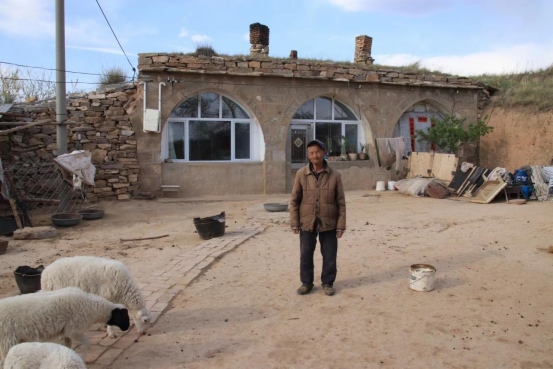 2022年5月15日,呼和浩特市長城科普學(xué)會會員來到清水河縣城關(guān)鎮(zhèn)銀滾山長城公園北面的邊墻壕村考察明大邊,在村口聽見狗吠,順著聲音走到邊墻人家門前,一只雞站下來一直看著你,等你走近的時候才扭著身子慢慢跑開;你也會聞到羊糞的味道,它們從大門縫里鉆出來,稀罕地與我們打著招呼。男主人在羊圈里清理羊糞,他抬起頭和我們說話,老人耳背,我們連說帶比劃才明白:老漢叫呂占全, 今年90歲,老伴叫郝二毛旦 ,81歲,家里只剩老兩口,兒女們都在市里工作。他們二老是邊墻壕村的守護(hù)者,世世代代一直與邊墻為伴。