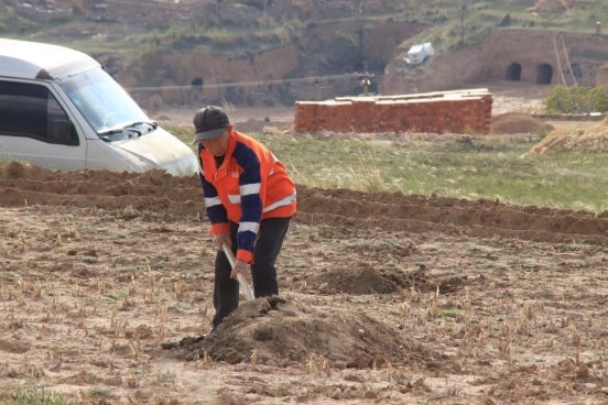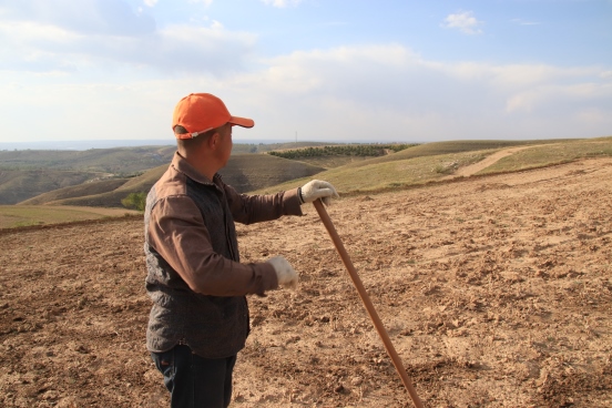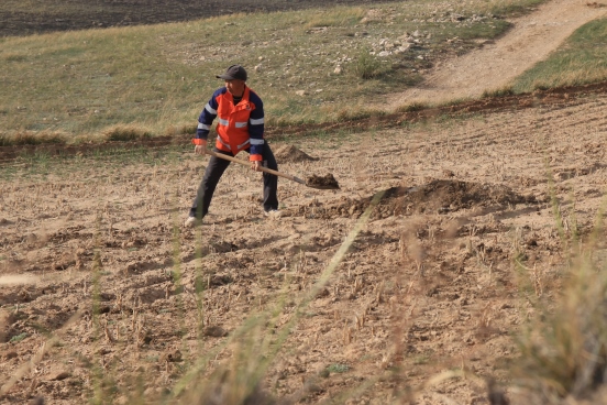 邊墻壕村是個小村莊,在村口遇見一對夫婦正在播種,據(jù)介紹全村現(xiàn)有20多戶人家四五十口人,年輕人都出去打工了,剩下些村民老人居多。讓我們再次把鏡頭對準(zhǔn)邊墻下春播的百姓。