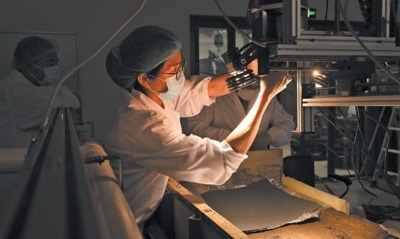 數(shù)字采集考古人員在實(shí)驗(yàn)室,對三星堆出土文物進(jìn)行高光譜掃描。廣漢市委宣傳部供圖