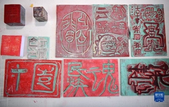 隆德縣第二中學(xué)學(xué)生制作的篆刻作品(11月30日攝)。新華社記者 王鵬 攝