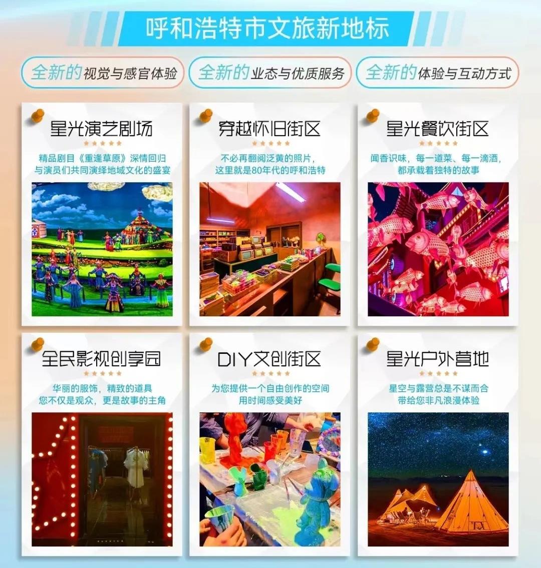 “敕勒川星光里”為免門票常態(tài)化經(jīng)營(yíng)模式。場(chǎng)館內(nèi)4大主題區(qū)均可免費(fèi)暢玩打卡,定時(shí)開(kāi)展場(chǎng)景式演藝秀,數(shù)十名NPC帶您互動(dòng)體驗(yàn),餐飲、萌寵、美妝、DIY,還有穿越80年代等等,戶外場(chǎng)地也將以其獨(dú)特的草原風(fēng)情和現(xiàn)代化的設(shè)施為游客市民們提供戶外演出和休閑露營(yíng)的空間。