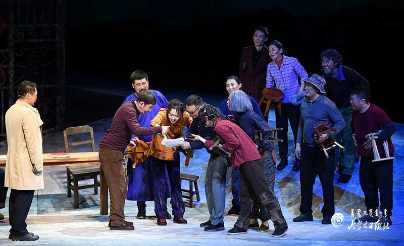 《紅手印》自2018年底首演后,不僅在城市劇院公演,還在全區(qū)各個盟市的旗縣進行巡演,共計演出60場。一次次表演,一遍遍打磨,造就了這部舞臺精品?!爸餍勺髌芬脒_到潛移默化的教化作用,不僅要調(diào)動起各種藝術(shù)手段,憑借作品所產(chǎn)生的藝術(shù)效果和感染力使廣大群眾喜聞樂見,還要通過接地氣的創(chuàng)編和演繹,讓劇中的思想深入人心?!睘趿Ω駹柮晒艅F團長烏蘭牧騎勒說。