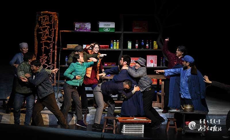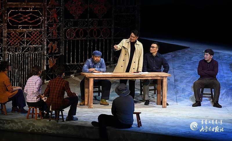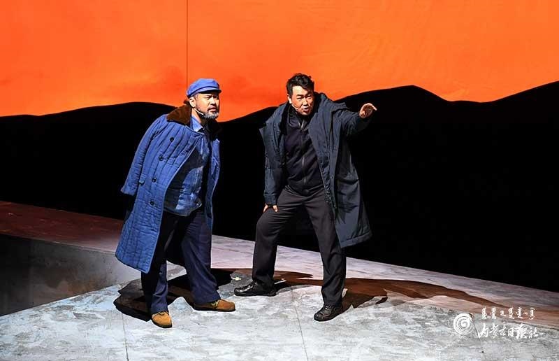 參演《紅手印》的都是來自草原的蒙古族演員,不僅要完成漢語的臺詞,還要熟練自然地講出大量內(nèi)蒙古西部方言對白?!皩τ谠拕⊙輪T來說,臺詞功底太重要了。為了練好方言,我們好多演員早起練功的時候嘴里都念念有詞地說著西部方言?!毖輪T烏仁朝魯門說。他扮演的新扎木村主任令人印象深刻,一個一心想帶百姓致富卻屢遭失敗的老黨員形象?!爸氨硌輾v史題材的話劇大多是從影像和資料了解人物,這部戲的題材貼近觀眾們的現(xiàn)實生活,必須接地氣才能得到認可。我通過寫人物小傳的方式,深挖村主任的人物個性和從失望到燃起希望的內(nèi)心世界,讓觀眾能夠認可這個形象。”烏仁朝魯門說。