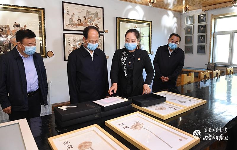 8月10日,自治區(qū)黨委書記、人大常委會(huì)主任石泰峰來(lái)到興安盟阿爾山市白狼鎮(zhèn)林俗文化產(chǎn)業(yè)發(fā)展有限公司,了解樹皮畫產(chǎn)業(yè)助力脫貧和非遺項(xiàng)目傳承發(fā)展情況。內(nèi)蒙古日?qǐng)?bào)記者 袁永紅 攝