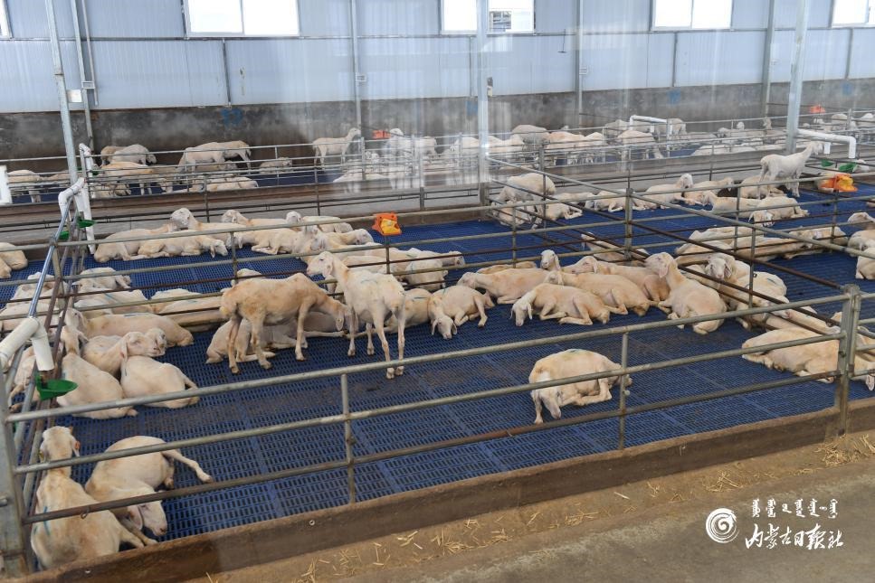 在五原縣金草原現(xiàn)代養(yǎng)殖園,15萬只胡羊在智能化圈舍內(nèi)生活得舒適自在,溫控、噴淋、全自動飲水、電動刮糞裝置一應俱全,撒料、消毒等一鍵完成,舒緩的音樂縈繞耳邊。