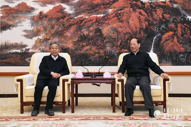 3月18日,自治區(qū)黨委書記、人大常委會主任石泰峰在呼和浩特會見教育部黨組書記、部長陳寶生。內蒙古日報社融媒體記者 袁永紅 攝