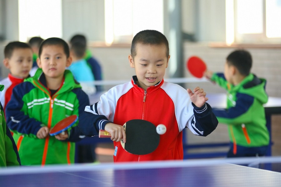 同學(xué)們正在練習(xí)乒乓球 彭瑞誠 攝影