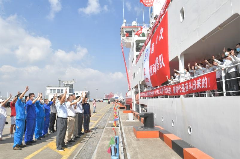 人們?cè)谏虾?guó)內(nèi)基地碼頭歡迎“雪龍2”號(hào)科考破冰船返航。自然資源部供圖