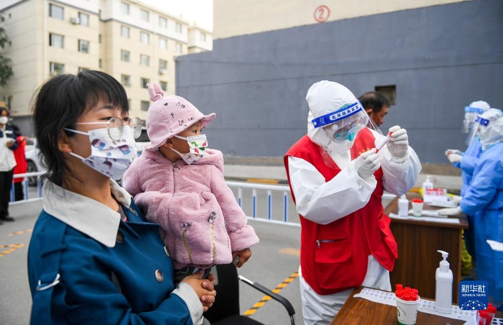 10月25日,在呼和浩特市賽罕區(qū)昭烏達(dá)南路街道惠民社區(qū)核酸檢測(cè)點(diǎn),醫(yī)護(hù)人員為居民進(jìn)行核酸檢測(cè)。