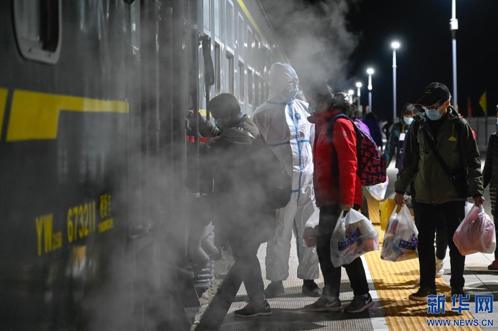 10月27日,滯留游客登上返程列車。新華社記者 賀書(shū)琛 攝