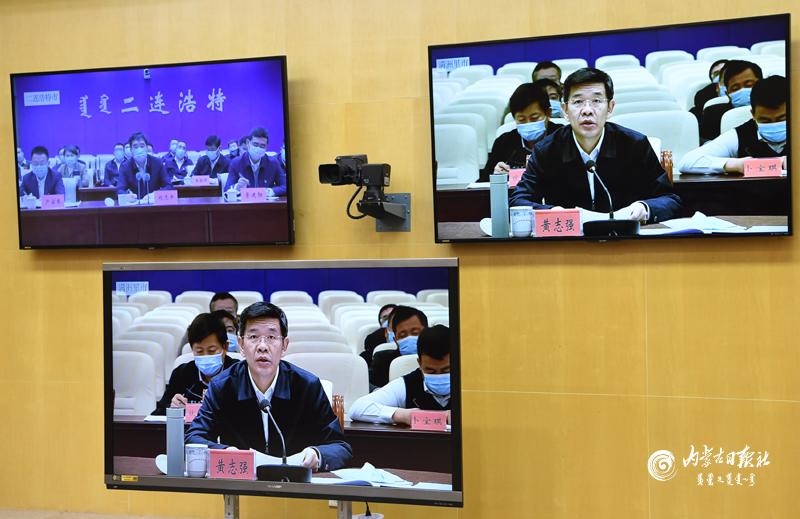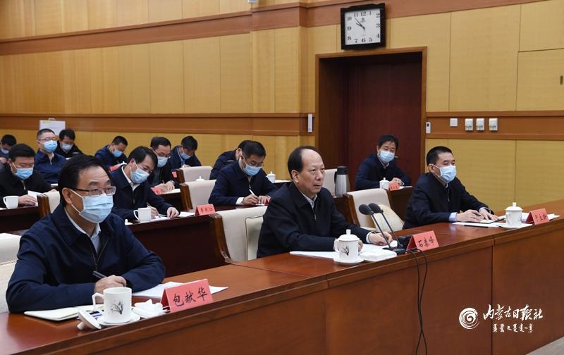 12月31日,自治區(qū)黨委書記、人大常委會(huì)主任石泰峰主持召開口岸疫情防控和通關(guān)情況視頻調(diào)度會(huì)并講話。內(nèi)蒙古日?qǐng)?bào)社融媒體記者 袁永紅 攝