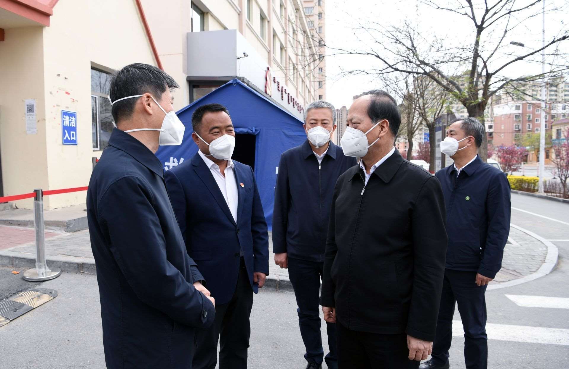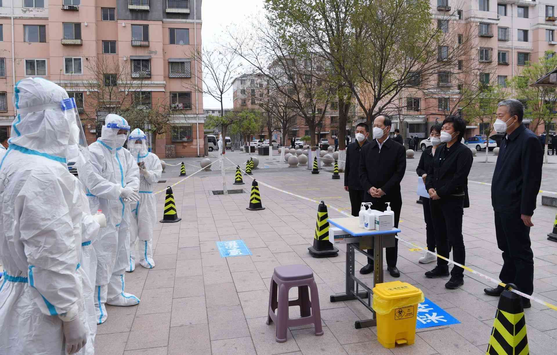 4月26日,自治區(qū)黨委書記、人大常委會(huì)主任石泰峰來到包頭市九原區(qū)龍?jiān)沸^(qū)B區(qū),了解疫情防控封控情況。內(nèi)蒙古日報(bào)社融媒體記者 袁永紅攝