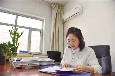 伏案工作的王改梅