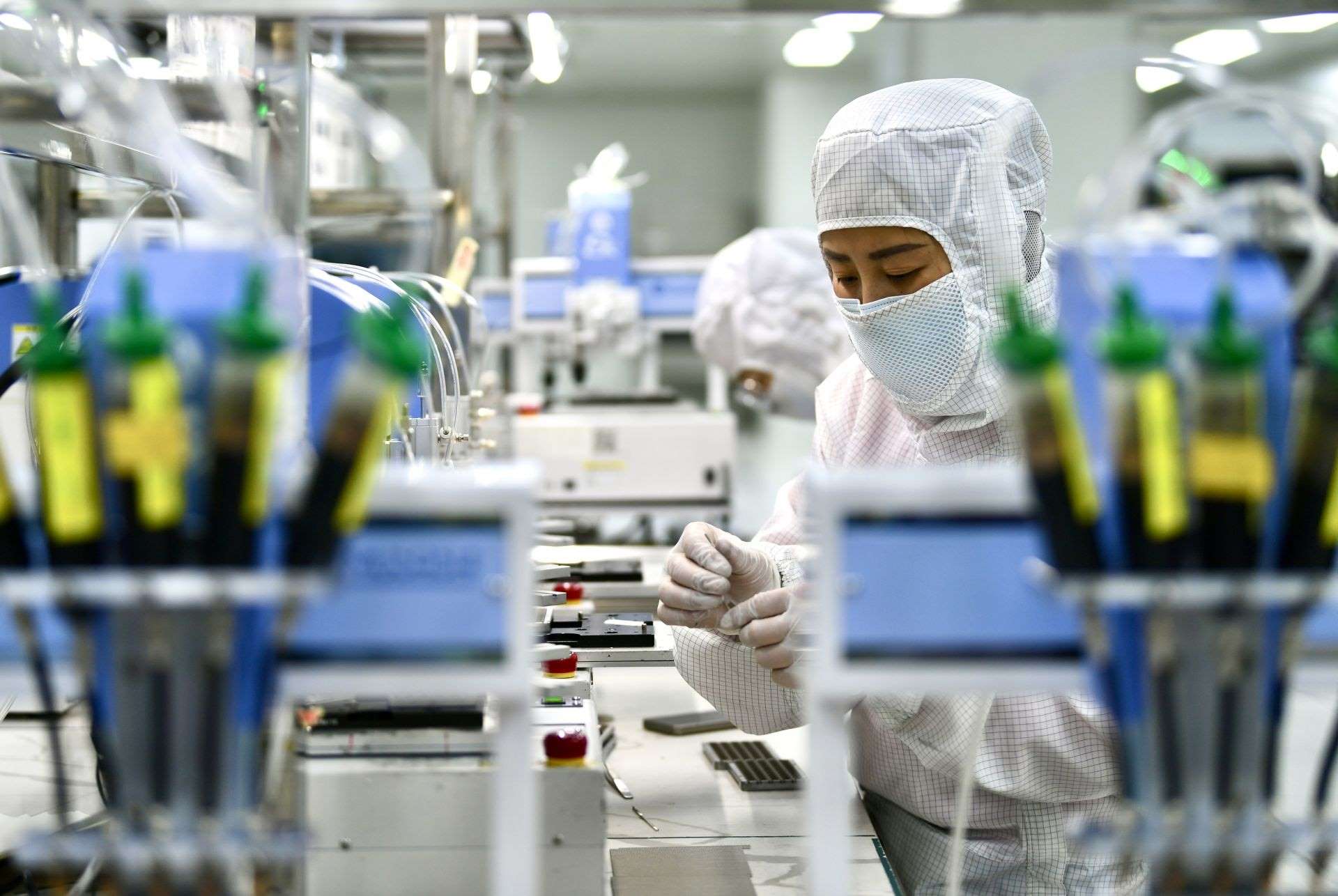 包頭稀土高新區(qū)稀土應(yīng)用產(chǎn)業(yè)園區(qū)內(nèi),包頭江馨微電機(jī)科技有限公司工作人員正在生產(chǎn)線上忙碌。