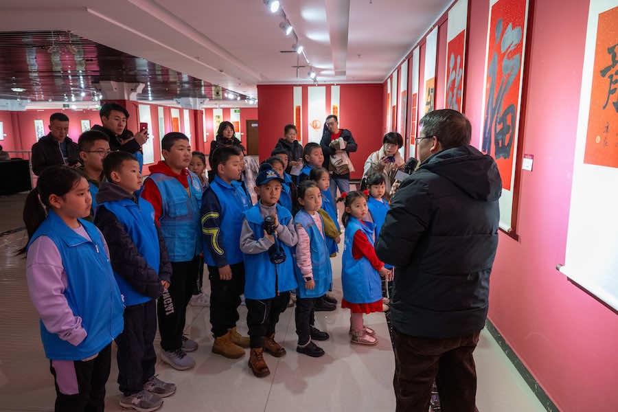 活動(dòng)現(xiàn)場(chǎng),20余名小朋友在家長(zhǎng)的陪同下,參觀了“藝美北疆 遇見青城”——呼和浩特市百福迎春賀歲作品展”和“藝美北疆 新春納福”——池上墨苔 水墨集中國(guó)書畫名家邀請(qǐng)展,小朋友在呼和浩特美術(shù)館老師的講解下,了解了春節(jié)貼“?!弊质俏覈?guó)民間由來已久的風(fēng)俗,“福”文化更是中華優(yōu)秀傳統(tǒng)文化的組成部分,激發(fā)了小朋友們對(duì)傳統(tǒng)文化的熱愛。