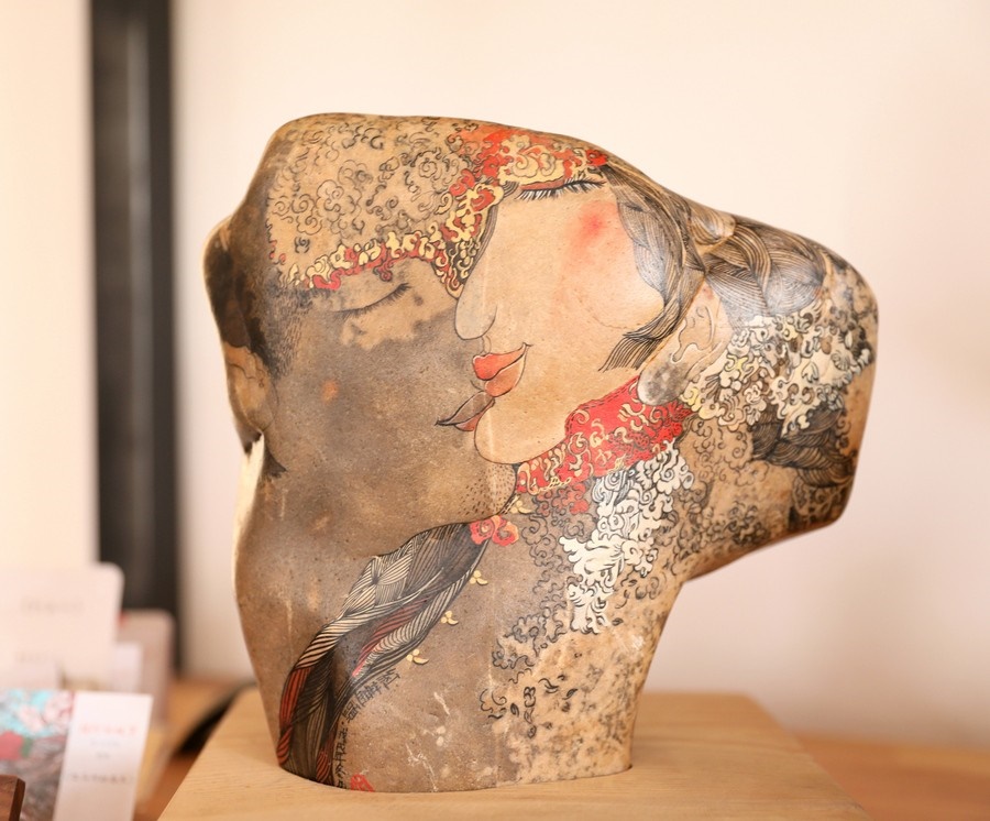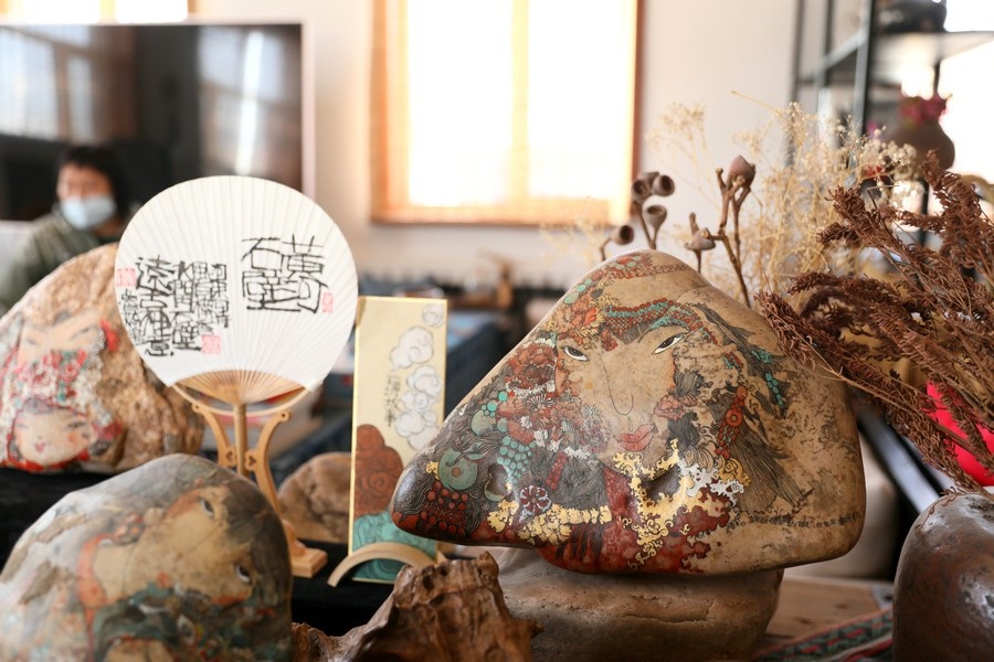 自2016年起,魯婷開始用黃河石畫的形式,講述母親河的故事。2018年,魯婷在西行客棧建立了自己的工作室,向社會各界免費開放,用黃河石彩繪的方式,為北疆文化注入新的思想和內(nèi)涵。