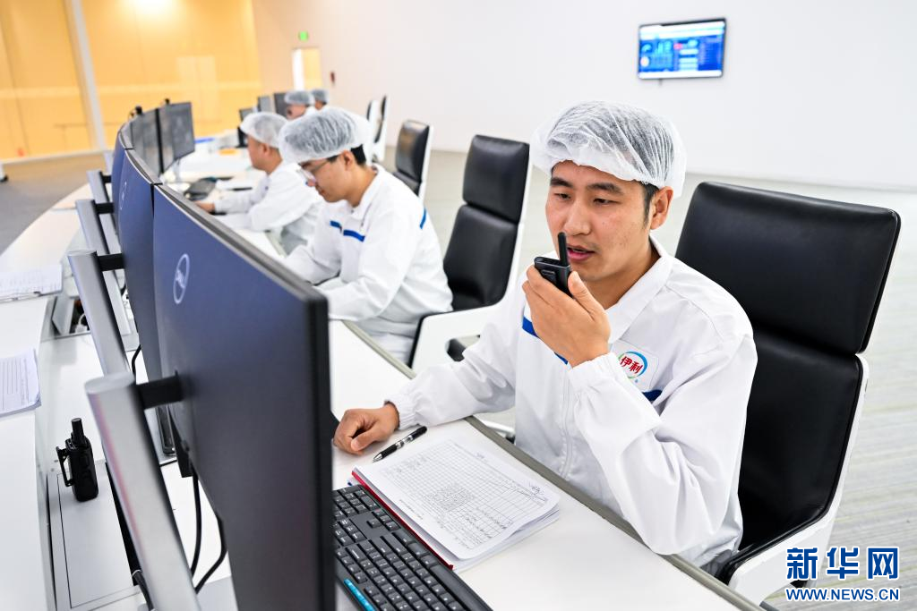 1月9日,在呼和浩特市伊利現(xiàn)代智慧健康谷液態(tài)奶全球智造標(biāo)桿基地智控中心,工作人員在進(jìn)行調(diào)度指揮。