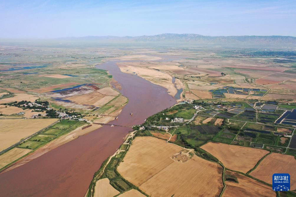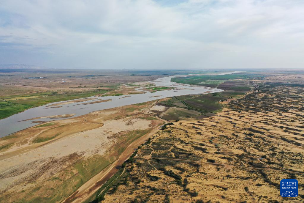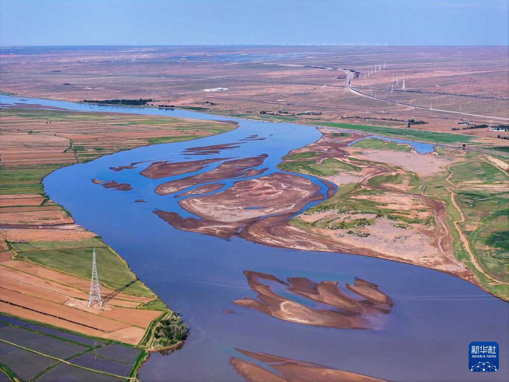 在巴彥淖爾市磴口縣劉拐沙頭,黃河蜿蜒而過(6月5日攝,無(wú)人機(jī)照片)新華社記者 連振 攝