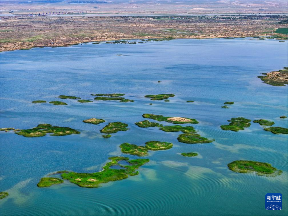這是位于巴彥淖爾市磴口縣的奈倫湖國(guó)家濕地公園(6月5日攝,無(wú)人機(jī)照片)。新華社記者 連振 攝