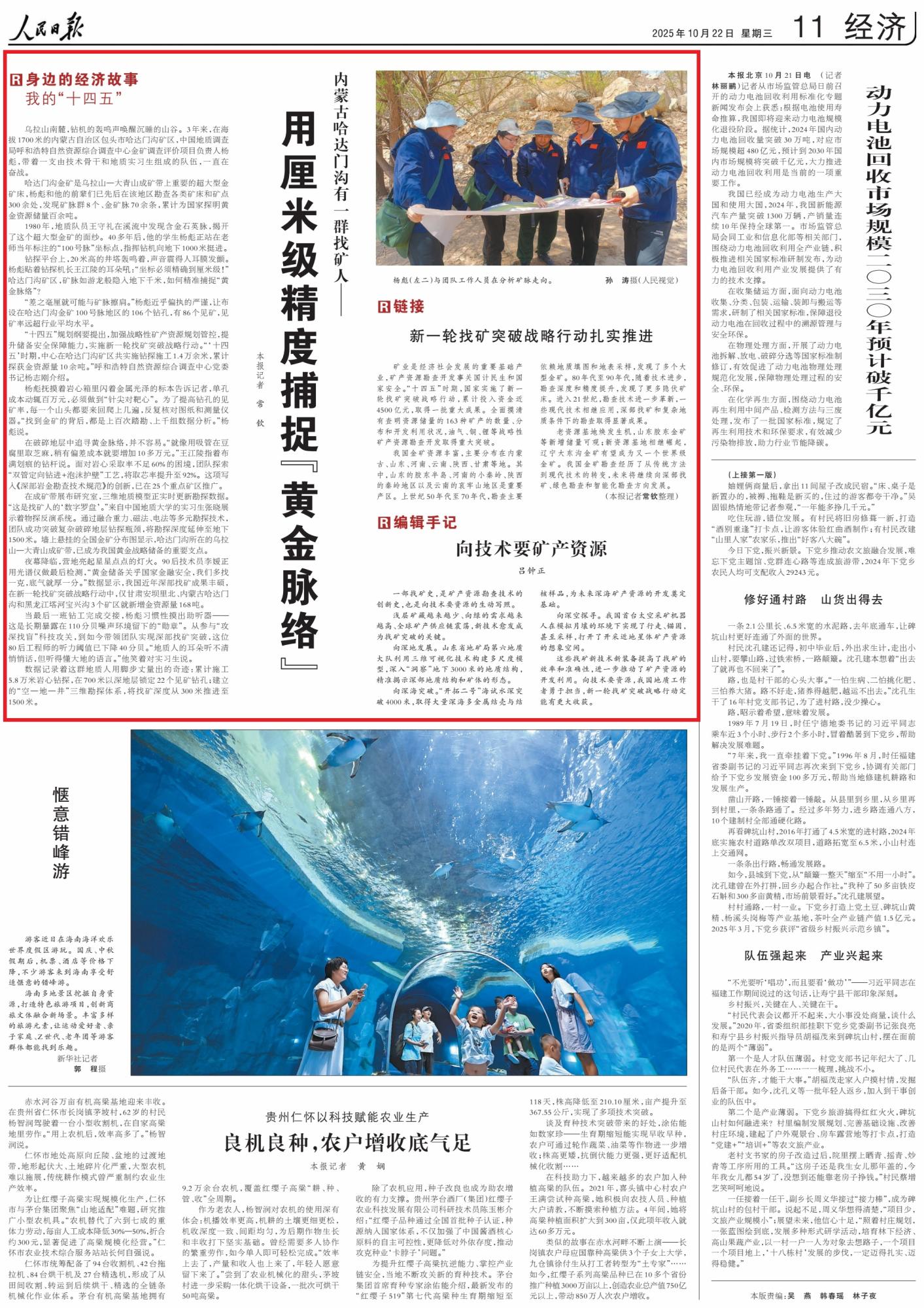 2025年10月22日,《人民日報》第11版刊發(fā)題為《內(nèi)蒙古哈達門溝有一群找礦人——用厘米級精度捕捉“黃金脈絡(luò)”》的文章,報道了中國地質(zhì)調(diào)查局楊彪團隊在內(nèi)蒙古哈達門溝礦區(qū)奮戰(zhàn)3年,依托前輩基礎(chǔ),累計探明黃金百余噸,“十四五”期間新增10余噸,鉆孔見礦率超行業(yè)平均。