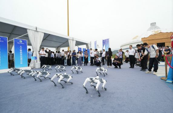 7月12日,2025綠色算力大會(huì)在呼和浩特開幕,圖為工作人員通過(guò)鍵盤操控機(jī)器狗進(jìn)行表演。