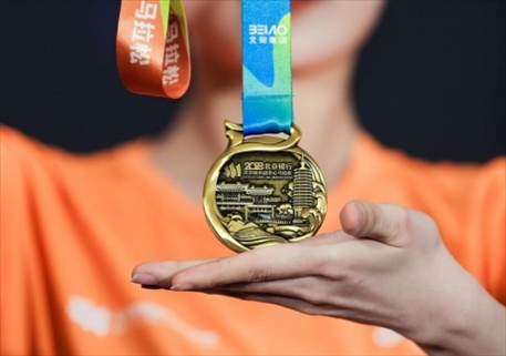 在新聞發(fā)布會上,賽事組委會還發(fā)布了本屆賽事的獎牌和服裝。獎牌名為“運河逐夢”,意為歡迎全國各地的跑友來北京城市副中心運河畔發(fā)展創(chuàng)業(yè)、追逐夢想。賽事服裝主色調橙色彰顯屬于馬拉松運動的青春活力,寓有馬到“橙”功之意。