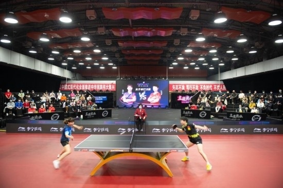 2月23日,中國(guó)乒乓球隊(duì)德班世乒賽選拔賽女單決賽中,孫穎莎(右)戰(zhàn)勝陳幸同奪冠。新華社記者 陳鐘昊 攝