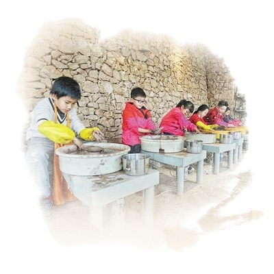 老劉則在傳習(xí)室里,一邊和著手中的陶土,一邊向孩子們講述陶藝的悠久歷史……